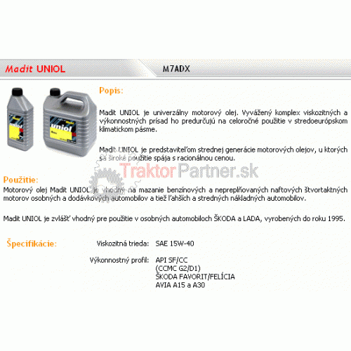 Motorový olej UNIOL M7ADX 180Kg - O/UNIOL.180KG-MAD