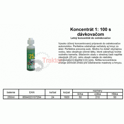 Letná zmes do ostrekovačov koncentrát 1:100 s dávkovačom 250ml - OST/K1:100.0,25L