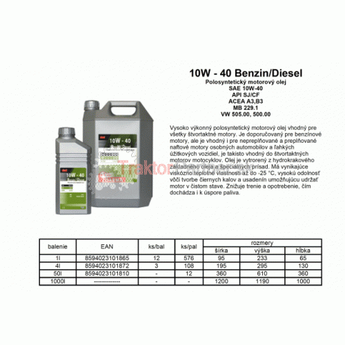 Motorový olej 10W-40 Benzin/Diesel 1L - O/10W-40BD.1L