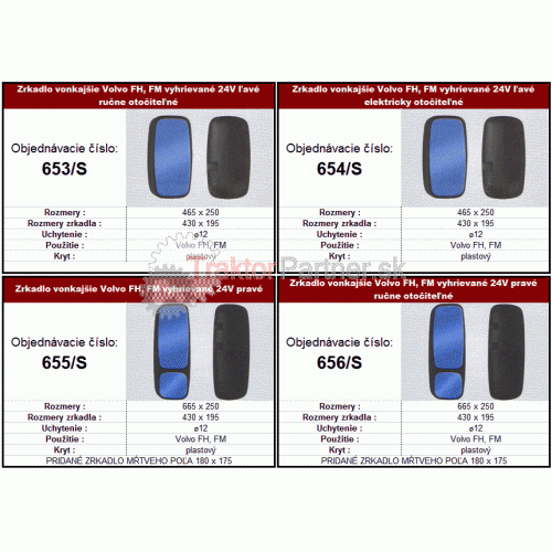 Zrkadlo vonkajšie Volvo FH,FM vyhrievané 24V ľavé ručne otočiteľné - 653/S