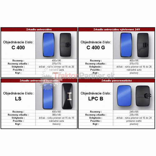 Zrkadlo univerzálne vonkajšie 400x160 železné - LS